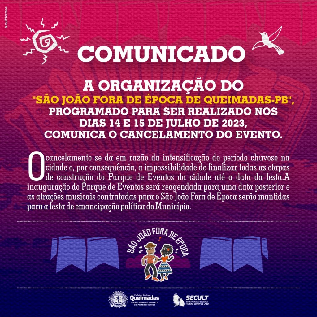 Queimadas-PB", programado para ser realizado nos dias 14 e 15 de julho de
