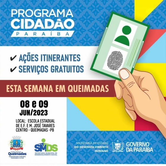 Em parceria com a Secretaria Municipal de Desenvolvimento Social, o Governo do Estado traz para Queimadas-PB o "Programa Cidadão Paraíba", com a emissão gratuita de documentos para as pessoas de baixo poder aquisitivo.